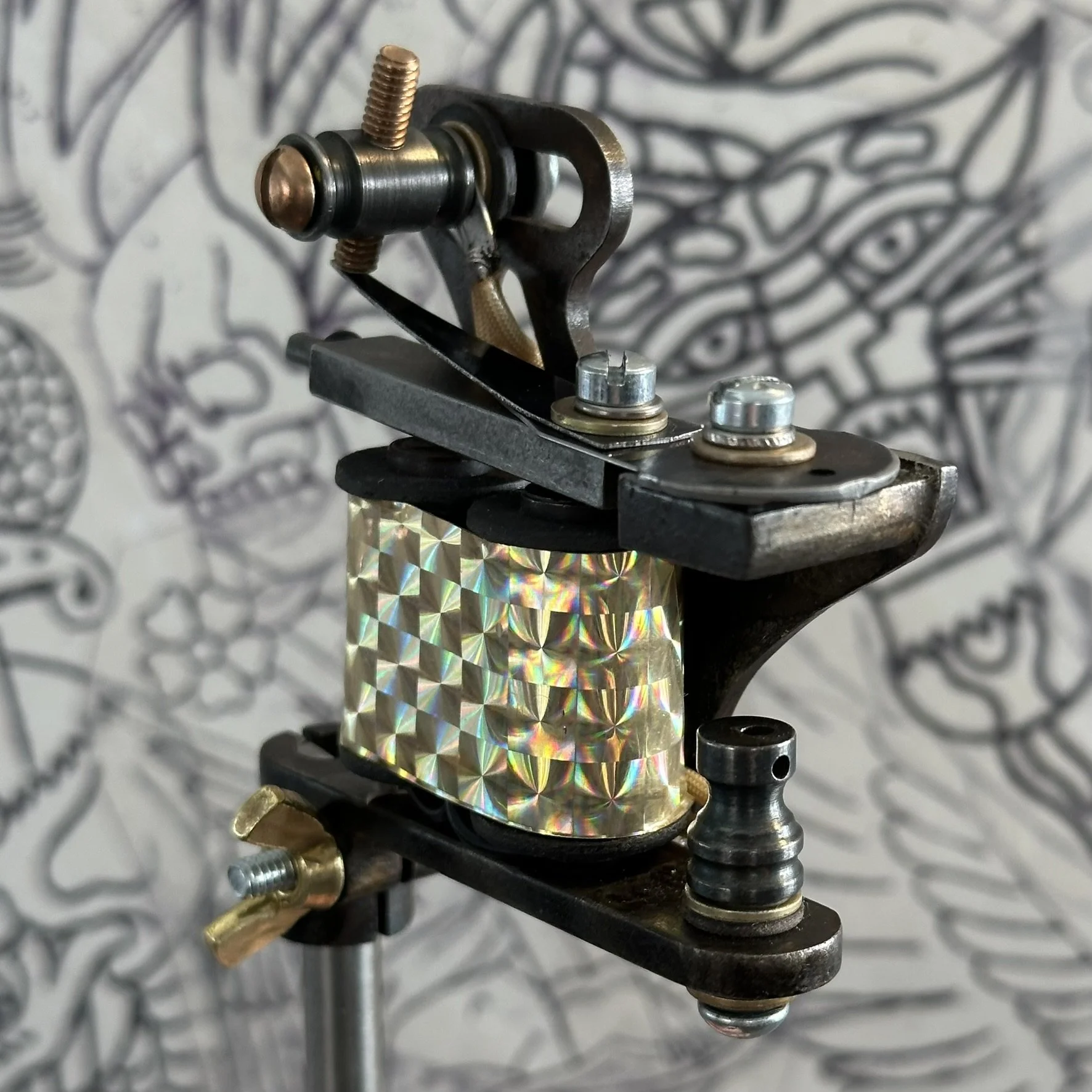 This one off shader is made to pack color and quickly! This is a no nonsense, traditional style tattoo machine. It’s got that vintage Sprague large capacitor on there for extra mojo and power. This shader will make you a faster tattooer.